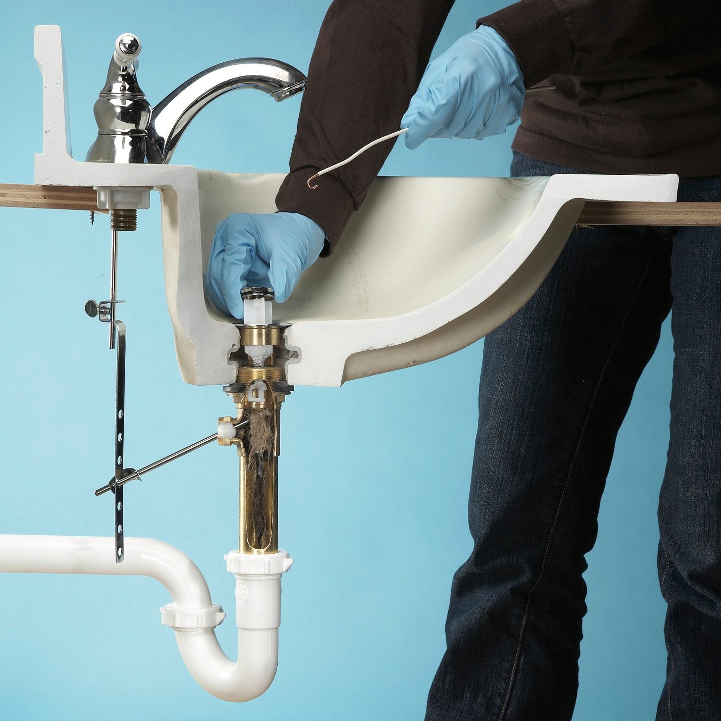 Slow-moving or stopped-up drains are common in bathroom sinks. But luckily the fix is usually simple and takes only about 15 minutes. The problem is almost always caused by hair and gummy soap scum that gets caught on the stopper or pivot rod and clogs the drain.