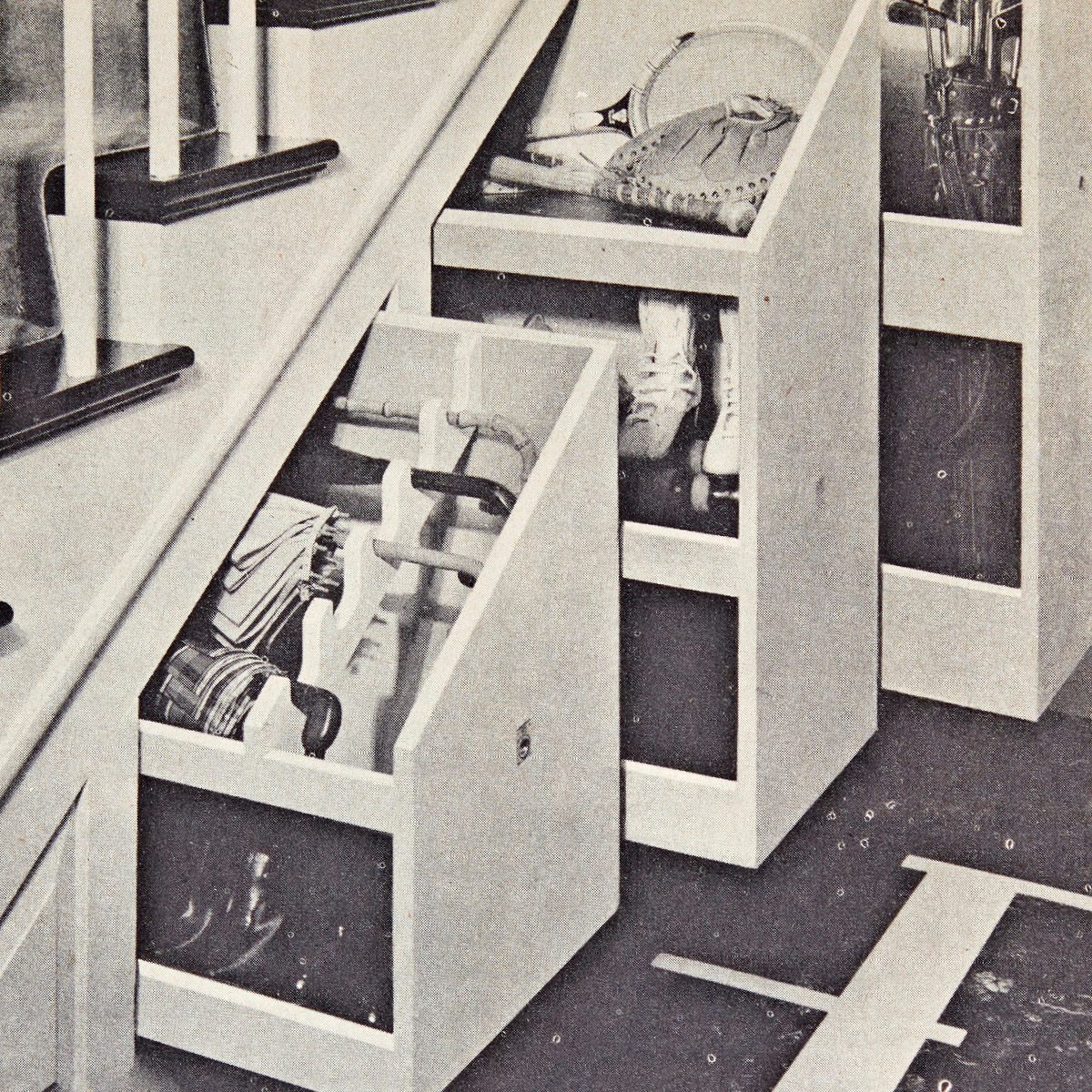 My design is similar to one we featured 65 years ago. The building process was much the same, but I upgraded the plywood, used modern ball-bearing slides, and chose concealed push latches for a clean look. Hidden behind the paneled wall is a lot of accessible, organized storage space.